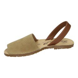 Menorquinas de piel para mujer, en color arena, modelo clásico con cinta trasera que sujeta el pie. Suaves, cómodas, ligeras y fresquitas, ideales para usar en los días de verano con cualquier outfit veraniego. Fabricadas en España por Sandali.