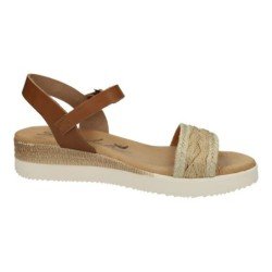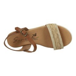 El diseño incluye una cuña baja que proporciona una elevación sutil y confortable, ideal para largos períodos de uso. Además, la planta de piel en el interior de la sandalia asegura un tacto suave, adaptándose a la forma del pie y proporcionando un soporte óptimo durante todo el día.
