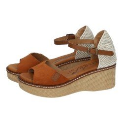 Estas sandalias de piel con cuña color cuero de la marca SANDALI combinan elegancia natural y comodidad en un diseño perfecto para el verano. El corte en piel suave aporta un toque cálido y sofisticado, ideal para elevar cualquier look casual o bohemio.