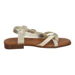 Estas sandalias planas de mujer en color platino de la marca SANDALI son el complemento perfecto para el verano.