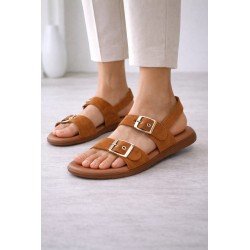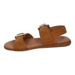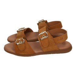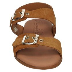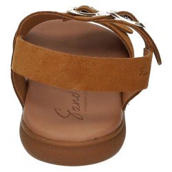 Este calzado abierto en tono cuero, acabado en serraje, está pensado para caminar cómodo muchas horas: su plantilla acolchada suaviza la pisada y mejora la sensación de descanso durante el día.